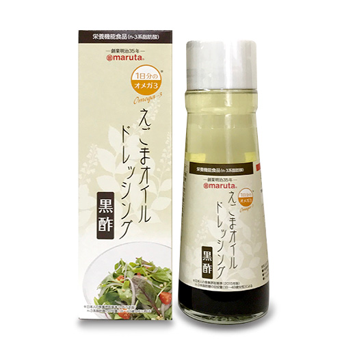 国産玄米100%の黒酢とα-リノレン酸たっぷり、えごま油(しそ油)のドレッシングです。