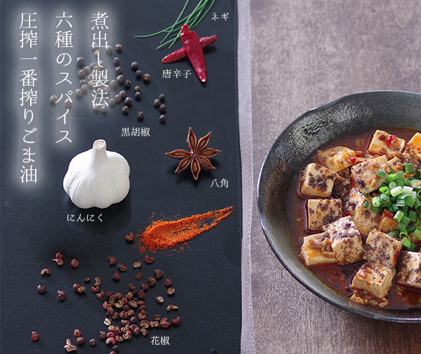 | 原材料: | 食用ごま油(国内製造)、唐辛子、花椒、にんにく、黒胡椒、ねぎ、八角 |