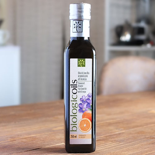 有機JAS認証のイタリア産オレンジ風味有機アマニオイルです。